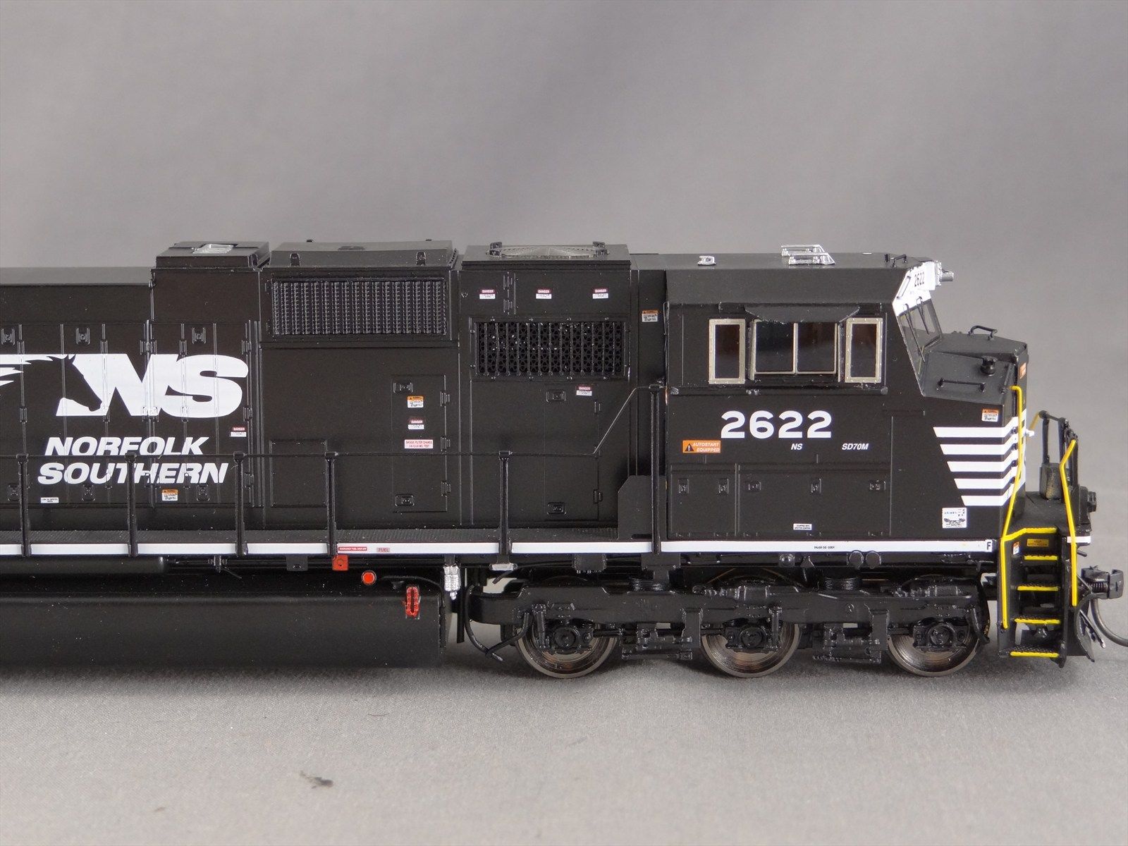 | Notes: | FACTORY PAINTED - W/ PHASE II CAB - #2595 OR 2618 OR 2622 - BLACK W/ NEW IMAGE LOGO - LIGHTS - DITCH LIGHTS - SD70 - NORFOLK SOUTHERN - OMI-087010038.1 |