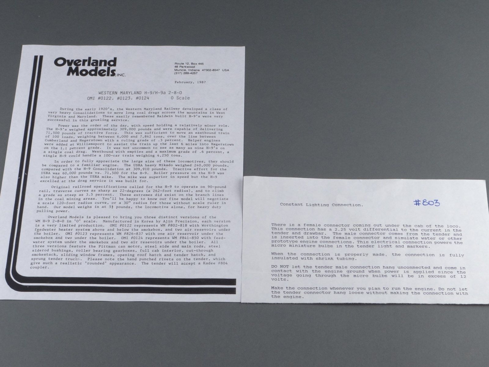 O Scale 2-Rail Brass Model Train - OMI 0122 WM Western Maryland 2-8-0 H-9 #803 - Custom