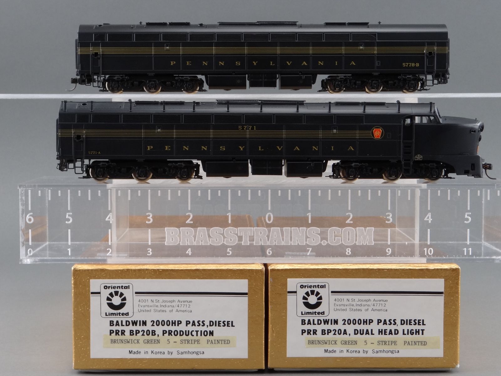 HO Brass Model Train - Oriental PRR Baldwin BP20A BP20B Diesel Set - Brunswick Green 5-Stripe