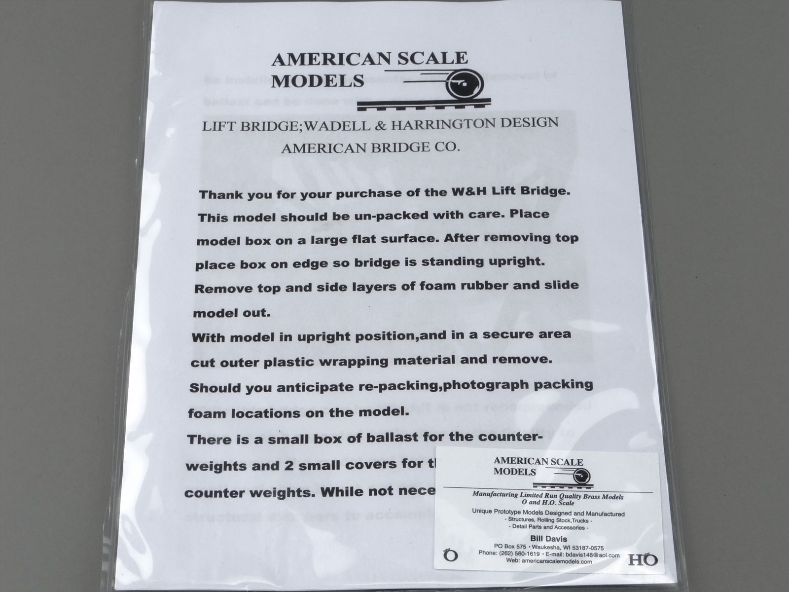 HO Brass Model Structure - ASM American Scale Models Wadell & Harrington Lift Bridge