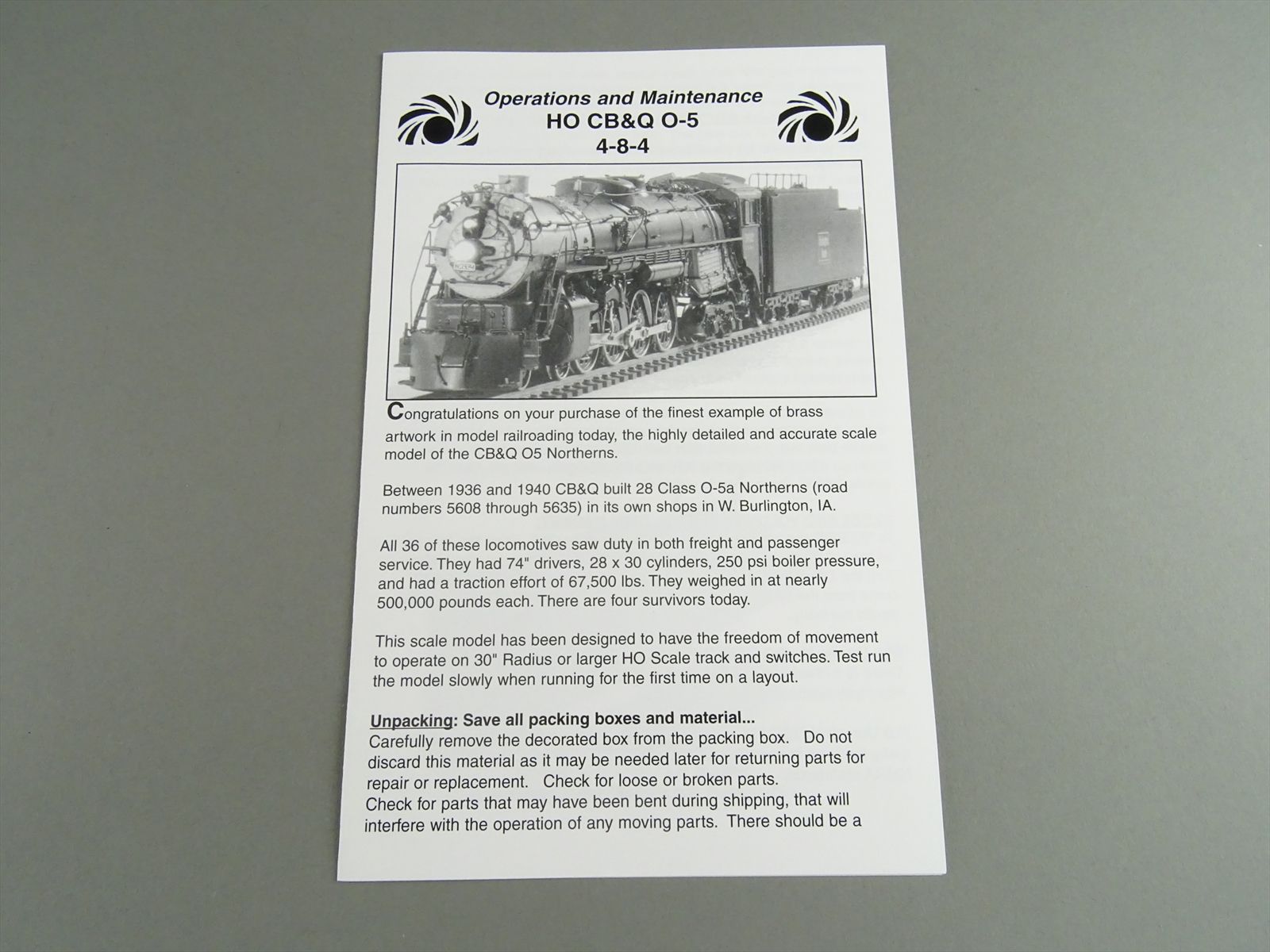 HO Scale Brass Model Train - Sunset Models - CB&Q O-5 4-8-4 Open Cab #5614 w/QSI Sound