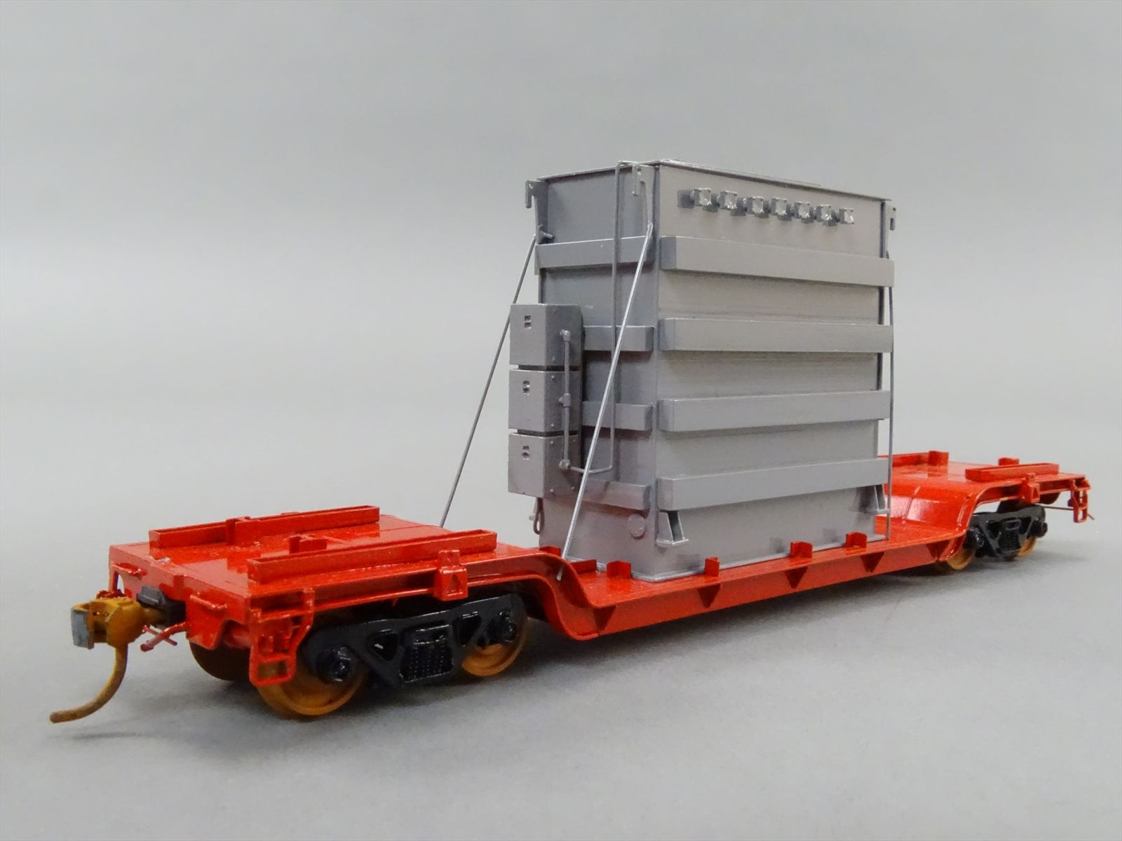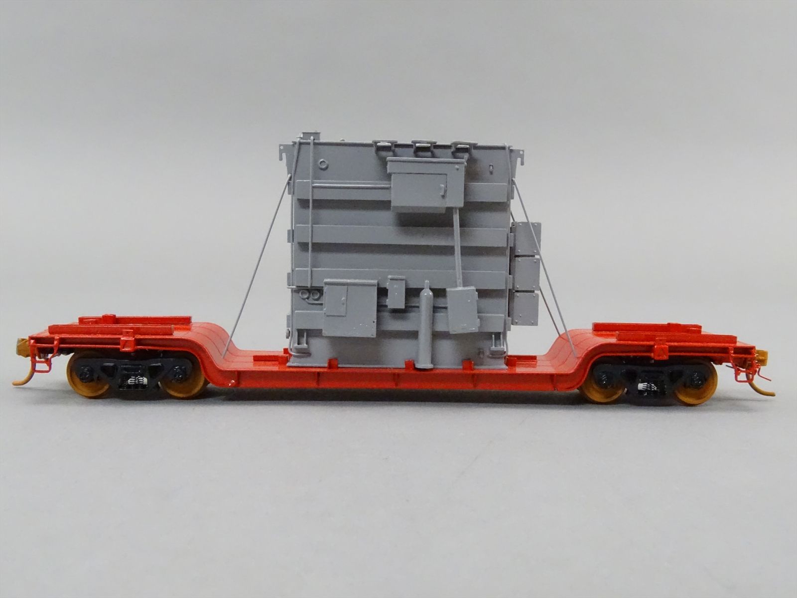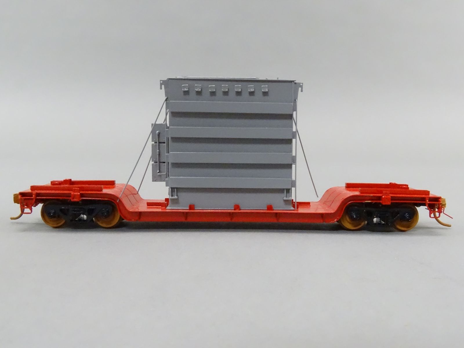 HO Brass Model - OMI 1347 Center Flatcar Flat Car w/ Transformer Load - Custom + Unlettered - 1983 Run - M.S. Models - *BRAKE WHEEL LOOSE*