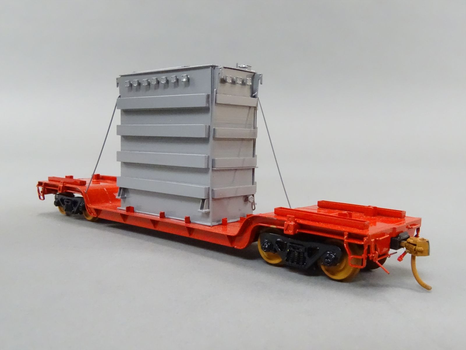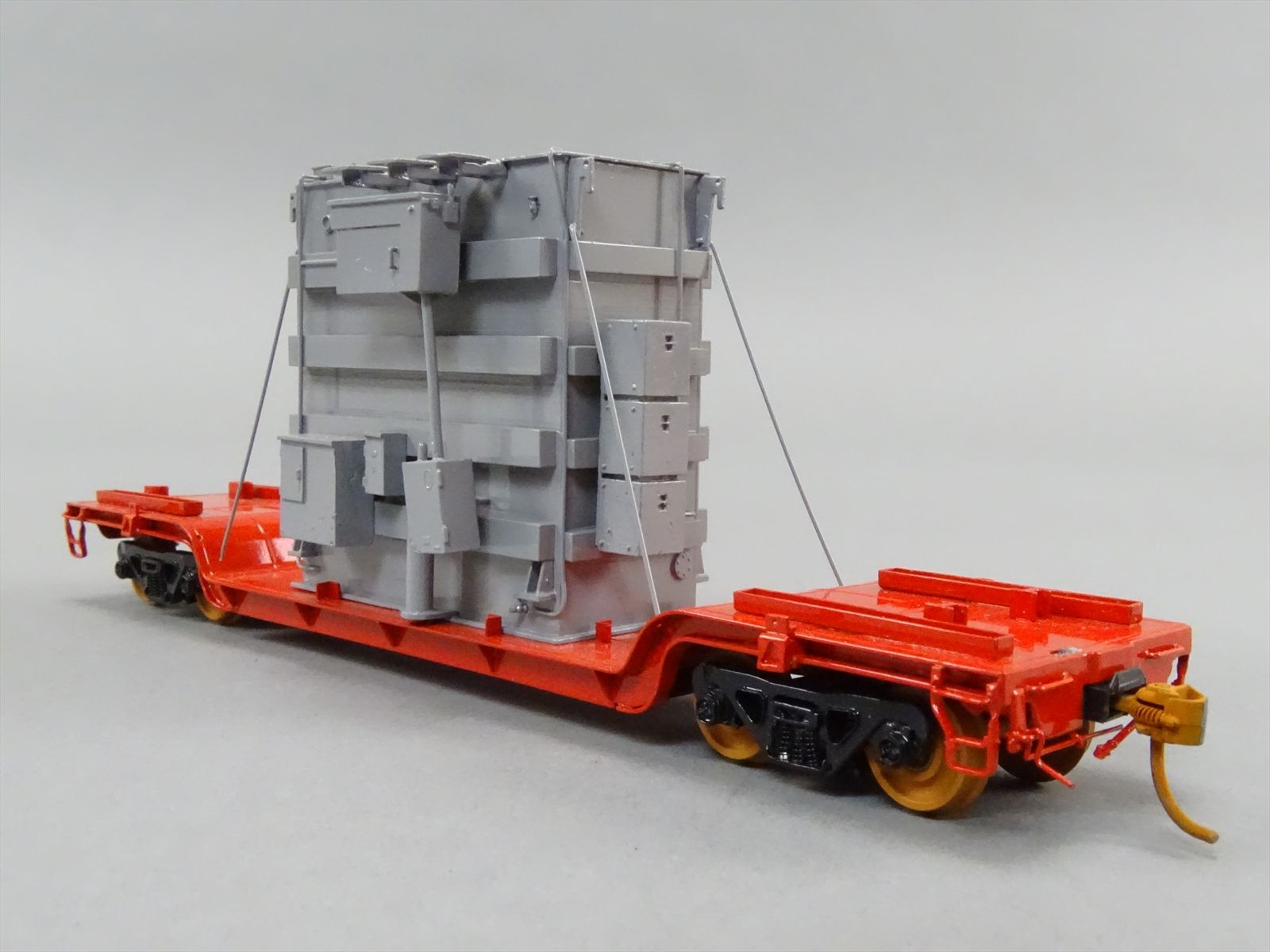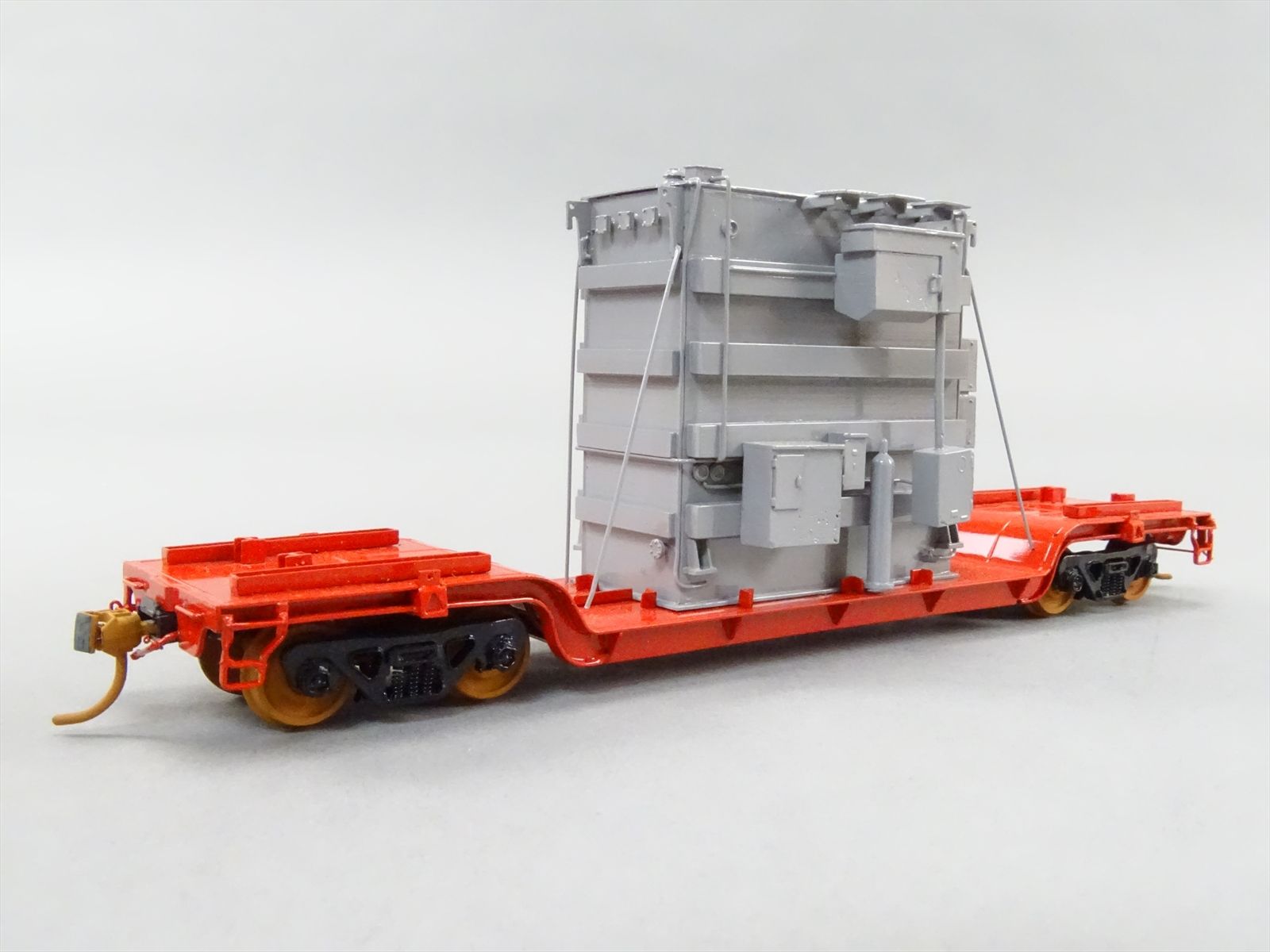 HO Brass Model - OMI 1347 Center Flatcar Flat Car w/ Transformer Load - Custom + Unlettered - 1983 Run - M.S. Models - *BRAKE WHEEL LOOSE*