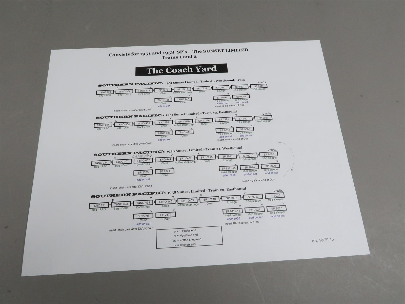 HO Brass Model - TCY 0941.2spl SP Southern Pacific 1958 Sunset Limited 13 Car Set New Orleans - Los Angeles Westbound - F/P + Interior - 2016 Run - Sam-Tech - FRED HILL EXCLUSIVE